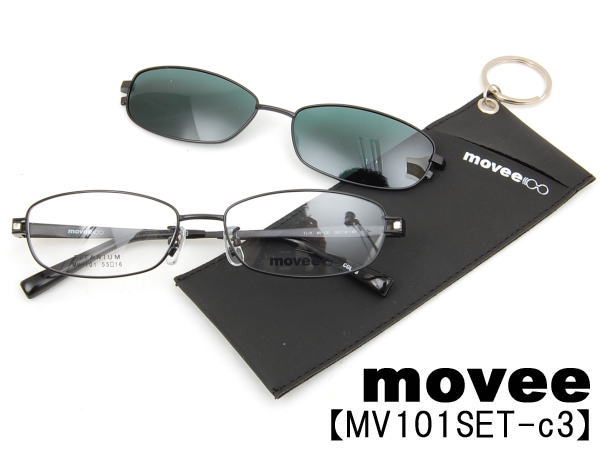 .◆送料無料◆movee(ムービー)【MV101SET-c3】(メタルフレーム+薄型非球面レンズ屈折率1.56+サングラス+メガネクロス+メガネケース)【1019_送料無料】